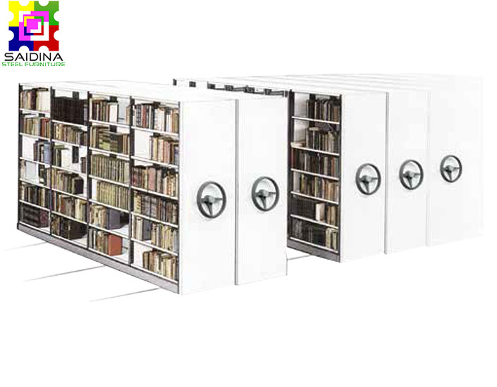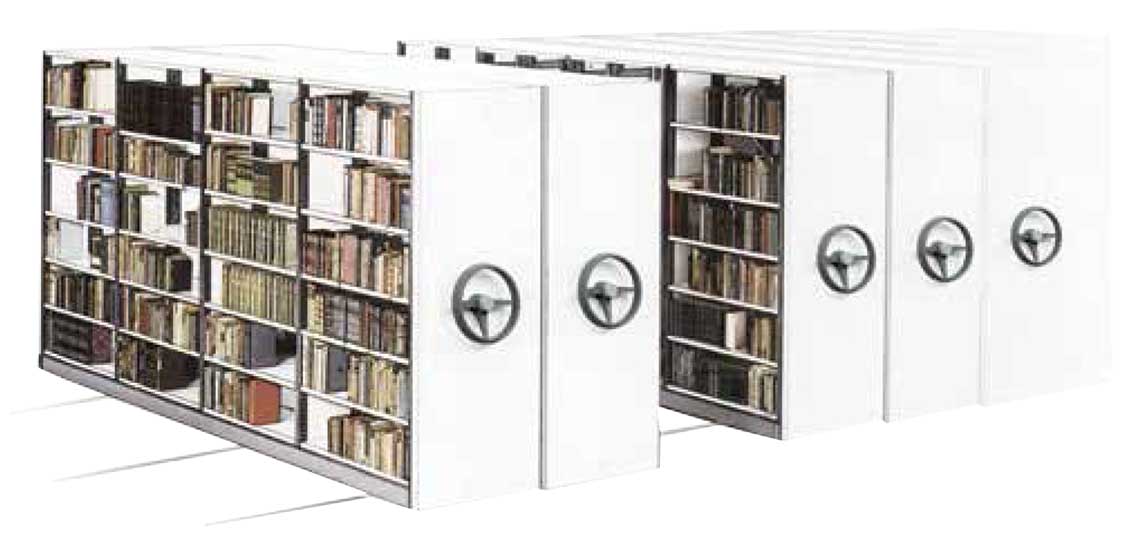 Our mechanical wheel type mobile compactor is designed using different gear ratio so that the cabinet can be moved by generally turning the handwheel. This design minimizes the power to move a large object. Besides, gears and roller chains have been tested for the firmness. This is the reason why we can vouch that our mobile compactor can move much smoother and quieter.